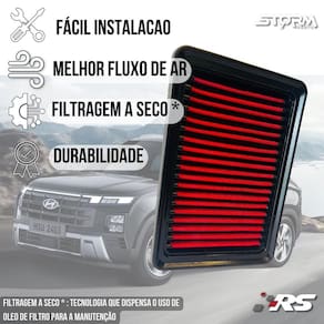 Diferencial do Filtro de ar esportivo: A função do filtro de ar esportivo é semelhante a um filtro de ar padrão, porém o diferencial é o alto fluxo de ar, assim seu motor consegue admitir mais ar para a câmara de combustão. Isso faz com que o veículo consiga realizar uma melhor queima de combustível, consequentemente gera melhor eficiência energética, menor consumo de conbustível e aumento de potência, além é claro de sua vida útil muito superior de 100 mil KM . Compatível com : Hyundai Creta 1.0 Turbo 2025 Hyundai Creta 1.6 Turbo 2025 Medidas do Filtro: Acompanha: 01 Filtro de ar esportivo 01 Termo de 01 Manual de lavação 01 Chaveiro Premium 02 Adesivos Performance: O desenvolvimento do filtro esportivo é focado para fornecer um fluxo de ar mais elevado, garantindo maior passagem de ar para o motor. Ao utilizar o filtro esportivo RS, o seu veículo receberá a melhor tecnologia e performance Benefícios: Nosso grande diferencial é o equilíbrio entre o alto fluxo de ar com excelente filtragem, sendo um item indispensável para quem deseja maior rendimento do combustível Sustentável: : 100 Mil Km cobre: Defeitos dos materiais/fabricação não cobre: Uso impróprio, não realização das lavações recomendadas, modificações, reparo não autorizado, qualquer tipo de uso extremo, qualquer uso off-road, danos devido a transporte e armazenamento. Principais Perguntas: P. Necessita adaptação para instalar P. Acusa algum erro no painel do carro P. Qual a condição do produto R. Vendemos somente produtos novos e lacrados Obs: apesar de simples instalação orientamos que a instalação seja feita por um . Quem Somos: Somos a Storm Parts, trabalhamos com peças automotivas de alta qualidade e com , queremos que você e seu carro tenham a melhor experiência, por isso selecionamos cuidadosamente todos nossos produtos, os produtos da Storm Parts são a melhor opção para quem busca qualidade e confiança a um preço justo. Tenha tranquilidade de comprar com quem está disposto a oferecer o melhor atendimento, caso precise de ajuda antes ou após a compra, conte com a nossa equipe de atendimento para lhe ajudar.