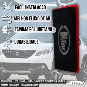 Filtro ar esportivo peugeot 2008 1.6 thp turbo 2019 a 2023 Características: - desenhado para melhorar a eficiência do veículo; - não descartável lavável e 100% reciclável; - vida útil de 2 anos ou 60.000km; - redução da emissão veicular; - redução na quantidade de trocas de filtro de ar convencional de papel ecologicamente correto ; - espuma poliuretano performance de filtro ar esportivo ; - não sofre com ação de umidade e chuva; - óleo utilizado: óleo mineral vaselina líquida neutra - modelo urbano, podendo ser utilizado em ruas de terra com manutenção antecipada. Na utilização por longos períodos em estradas não pavimentadas, as condições de limpeza do filtro devem ser avaliadas a cada 5 mil km.