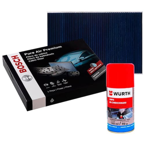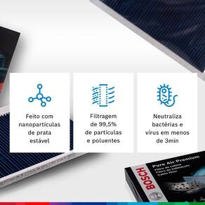 FILTRO CABINE ANTIVIRAL E ANTI BACTERIANO PREMIUM BOSCH + HIGIENIZADOR AR CONDICIONADO