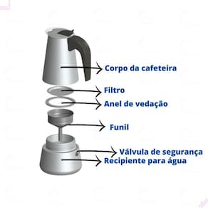 Conteúdo da embalagem: 1 filtro de cafeteira italiana 2 xícaras com borracha de silicone