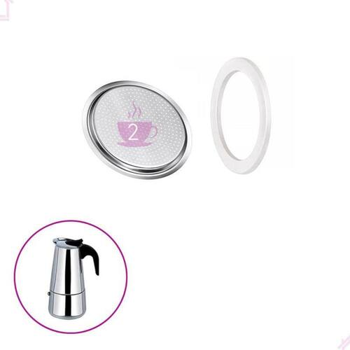 Filtro e borracha de vedação de silicone para cafeteira italiana moka de 2 xícaras. Mantém o aroma e sabor do café, com vedação total para evitar escape de vapor.Tipo