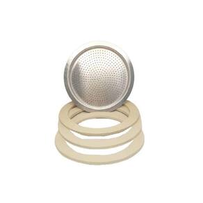 Filtro cafeteira italiana 3 xícaras com borracha reposição Nosso empenho é procurar o que há de mais atual e funcional no mundo culinário e para organização da sua casa, priorizando sempre a qualidade e a versatilidade dos produtos. Filtro cafeteira italiana 3 xícaras com borrachas O kit com 1 filtro e 3 borrachas de vedação para capacidade de 3 xícaras é perfeito para você que ama degustar um bom café moka. O filtro serve para manter o aroma e o sabor do café e as borrachas oferecem vedação total, evitando que o vapor de água escape ou o ar entre.Este kit é feito com materiais de excelente qualidade e durabilidade, que vai permitir que você use sua cafeteira por muito mais tempo. Marca: Ke home Material: Filtro: aço inoxBorrachas: silicone Medidas: Diâmetro externo da borracha: 6,5 cm Diâmetro interno da borracha: 5 cm Diâmetro do filtro: 4,8 cm Conservando o seu produto: Lave antes e depois de usar, utilizando detergentes neutros e esponja macia. Evite usar produtos abrasivos, eles podem causar riscos e arranhões nos utensílios. Lave e enxague em água corrente, secando logo em seguida para evitar manchas. Conteúdo da embalagem:1 filtro de cafeteira italiana 3 xícaras com 3 borrachas Gostou Esse produto pode ser seu aguardamos sua compra