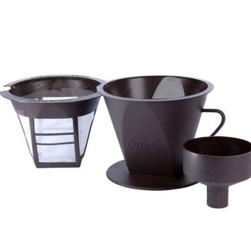 Coador permanente em tela de poliéster e plástico. Produto ecologicamente correto, evita o uso dos descartáveis. Coe café diretamente na garrafa evitando o resfriamento. Filtro 15 x 13 cm. Suporte 14 x 12 cm. Adaptador para garrafa 8 x 7 cm Diâmetro para encaixe na garrafa 2,5 cm. O valor anunciado é para uma unidade.