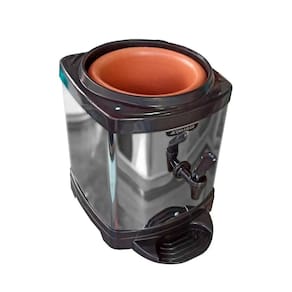 Componentes: 1 base de inox e cabeça de plastico transparente 1 vela 1 boia de nível - livre bpa 1 torneira tipo clique 1 cuba de barro