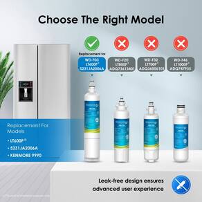 Waterdrop WD-F03 Substituição para LG® LT600P®, KENMORE 9990,5231JA2006A, 5231JA2006B, KENMORECLEAR 46-9990, WFC2001, LSC27931ST, LFX25960ST, FML-2, RWF10000ST. Um filtro de água para geladeira - Este filtro de água de geladeira Waterdrop de substituição para LG LT600P, apesar de seu preço acessível, oferece o melhor - uma mistura de desempenho de filtragem anterior e certificações importantes do conhecido órgão regulador do setor - certificados NSF 42 e NSF 372. Graças ao bloco de carbono de casca de coco 100% superior do Sri Lanka, este filtro de água para geladeira Kenmore 9990 é eficaz contra várias impurezas - Processo de filtragem avançado: se você está procurando uma maneira de reduzir as impurezas da água potável, a solução está aqui. Nosso filtro de água de geladeira de substituição 5231JA2006A filtra efetivamente as impurezas da sua água. Isso inclui metais pesados, mercúrio, cobre, cádmio, COV, cromo, THM e outras partículas suspensas testadas por laboratórios terceirizados. Enquanto as impurezas são reduzidas, todos os minerais benéficos em sua água são mantidos - Ajuste perfeito: agora você pode se preocupar menos com vazamentos de água devido a filtros de geladeira de substituição inadequados ou soltos. Esta substituição de filtro de geladeira Waterdrop é feita de um sistema avançado de automação industrial e uma tecnologia de medição de precisão que garante que você obtenha o mesmo ajuste que o autêntico. Além disso, você não precisa de ferramentas para instalar este filtro de água da geladeira. Basta seguir as diretrizes de instalação que fornecemos e você estará pronto em minutos - Material de filtro de primeira qualidade: aqui, você está obtendo uma melhoria significativa no filtro de carvão menos eficiente que depende de carvão, madeira, casca de nogueira e casca de damasco para filtrar a água. O material do filtro neste filtro é um bloco de carbono de casca de coco 100% selecionado no Sri Lanka, com área de superfície 2x maior e mais microporos - Adesivos de instalação mensal : você não precisa ir além para monitorar a vida útil do filtro da geladeira. Este filtro de geladeira Waterdrop é enviado com adesivos de instalação mensal que ajudam a rastrear a vida útil em todos os momentos. Agora você sabe quando esgotou 300 galões ou 6 meses de água pura, dependendo das condições da água - Substituição para modelos: LG LT600P, 5231JA2006A, 5231JA2006A-S, 5231JA2006B, 5231JA2006B-S, LT600P-B, LT600PC, filtros Kenmore 46-9990, 469990, 9990, R-9990, RFC11 000A, DWW. F-10, RFC1000A, EP-LT600P, FML-2, WFC2001, PL-800, CLCH104, AQF-FF03, FL-RF03, WS603, CWMF046, MB-F03, RWF1000AH, WF600, SGF-LA50, RWF111. 051, WF. 300 - Compatível com: LFX25961AL, LSC27931ST, LRSC26922TT, LFD22860ST, LFX25960ST, LFX25961ST, LFX25961SW, LFX25980ST, LMX25981SB, LRBC22544SB, LRBCBC22544SB, LRBCBCBC25BCBCBC2544SB, LRBCBCBC25BCBCBCBC2544SB, LRBCBCBC25BCBCBC2544SB, LRBCBC225444 WW, LRFD25850ST, LRSC26910SW, LRSC26911SW, LRSC26920SB, LRSC26920SW, LRSC26923TT, LRSC26960TT, LRSC26980SB, LSC26945SW, LSC27950SW, LSC27950SW. FD2186 0ST - Purificado com amor: acreditamos que todos têm o direito de beber água pura onde quer que estejam. Não somos apenas sobre negócios; esperamos usar nossa tecnologia para beneficiar mais pessoas. Uma parte de cada compra que você faz é doada para fornecer água limpa e pura às crianças em regiões com escassez de água na África - LG é uma marca registrada da LG CORP. LG é utilizado apenas para fins de referência
