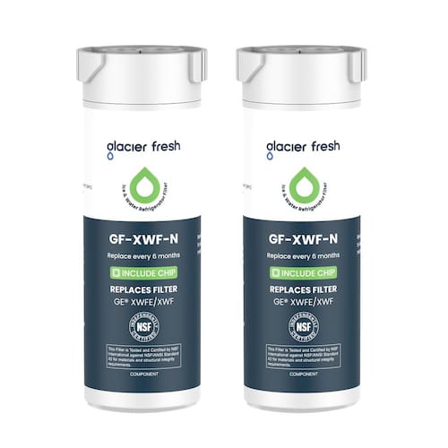 filtro de água para geladeira - GLACIER FRESH Substituição para filtro de água de geladeira XWFE (com CHIP) Declaração: Testado e verificado por testes de laboratório independentes, pode remover produtos químicos e contaminantes da sua água potável, resultando em água de sabor limpo e cheiro limpo. - NSF/ANSI 42: Testado por nosso laboratório independente, este produto reduz efetivamente 97,9% de cloro, odores, grafite e sabores desagradáveis na água. - Compatível com GE XWFE, GE XWF, GBE21, GDE21, GDE25, GFE24, GFE26, GNE21, GNE25, GNE27, GNE27, GWE19, GYE18, QNE27, GSE25, GSS23, GSS25, GZS22, PSE25, CZS22. - Oferece um ajuste preciso e à prova de vazamento: a substituição do filtro de água GF-XWF-N para XWFE é compatível com refrigeradores GE lado a lado e oferece uma instalação sem ferramentas. É um excelente substituto para o filtro GE XWFE. (A GLACIER FRESH é uma marca independente, e este produto não é fabricado pela GE.) - Vida útil do filtro: Substitui o filtro a cada 6 meses ou 200 galões, o que ocorrer primeiro.