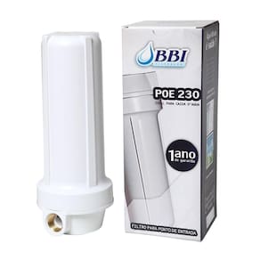 Filtro para entrada de residências, caixas dágua ou cavaletes BBI POE230Descritivo técnico:Marca: BBI FiltraçãoInstalação: Ponto de Entrada POE - Altura: 9 3/4 - Conexões: 3/4 Rosca Metálica - Pressão de Operação: Máxima 588 kPa 6,0 bar / Mínima 19,6 kPa 0,2 bar - Temperatura de Operação: Máxima 50 C / Mínima 1C- Dimensões do Produto: 118 x 118 x 300mm- Vazão Nominal: 1.200 litros / hora- Classe de Retenção de Partículas: Classe D De 15 a 30 micra 20 MICRA- Extraíveis: Aplicável- Eficiência na redução de cloro livre, eficiência bacteriológica e controle de nível microbiológico: Não Aplicáveis.- Composição Básica: Carcaça em Polipropileno / Elemento Filtrante em Polipropileno- Modelo do Elemento Filtrante: REP POE230 ou PP10/20B.Características: remove sólidos e sedimentos suspensos na água. Evita obstruções de válvulas e registros, entupimento dos bicos do chuveiro e reduz as incrustações na tubulação. Aplicações: pontos de entrada de rede, cavalete, caixas dágua, máquinas de lavar. Ideal para casas, restaurantes, escolas, hotéis, entre outros. Também indicado como pré-filtração para outras aplicações.Benefícios: - Retém sólidos e sedimentos suspensos na água.- Evita obstruções de válvulas e registros, entupimento dos bicos do chuveiro e reduz as incrustações na tubulação.- Reduz a frequência de limpeza da caixa dágua.- Fácil instalação e manutenção.- Água limpa em toda casa.- Possui elemento filtrante de polipropileno atóxico. Sua formação rígida evita a formação de caminhos viciosos da água. Alta eficiência até o fim da vida útil do elemento.- Evita constantes manutenções nas caixas dágua e cisternas.- Aumenta a vida útil de equipamentos hidráulicos.- Manutenção fácil e prática.Com água limpa, a tubulação fica protegida contra as corrosões provocadas pelo depósito da sujeira, além de evitar o entupimento de válvulas e outros equipamentos. Caso seja necessária uma maior vazão, instale os filtros em paralelo. Instale também após bombas dágua.Modelos compatíveis: FIT POE 9,3/4, Acqua 230, Acqua 230RH, Hidro Filter ECO, Filtro POE 9.3/4 BR Filter Flux, Poliaqua 300, Filtro para Caixa dÁgua FORTLEV, Filtro para Cavalete e Caixa dÁgua Branco 9.3/4 Equation, Filtro de Água Ponto de Entrada Acqualimp, Filtro 3M Aqualar Aquatotal, Filtro 3M Aqualar Aquatotal, Filtro de Água Bakof Tec.
