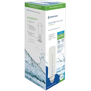Cartucho de reemplazo Pentair FreshPoint para sistema de filtración de agua Easy Flow bajo fregadero, filtro de agua PFAS, certificado NSF para reducir plomo y PFOA/PFOS, dura hasta 1 año o 3,000 galones. - AGUA POTABLE DE EXCELENTE SABOR - Certificado NSF 42 y 53 para reducir plomo, sabor y olor a cloro y quistes. - TRANQUILIDAD GARANTIZADA AL SABER QUE ESTE CARTUCHO REDUCE HASTA EL 98% DE PFOA/PFOS, los llamados “químicos eternos”. Cuando se usa en el sistema Easy Flow, este cartucho está certificado por IAPMO R&T según NSF/ANSI 53 para la reducción de ácido perfluorooctanoico (PFOA) y sulfonato de perfluorooctano (PFOS). - FÁCIL INSTALACIÓN - Todo lo necesario para instalar bajo tu encimera está incluido. - NO MÁS JARRAS DE AGUA - Flujo alto de 2.2 galones por minuto para disfrutar agua del grifo deliciosa sin esperas. - FILTRO DE LARGA DURACIÓN - El filtro de carbón bloquea hasta 3,000 galones o 1 año, lo que ocurra primero.
