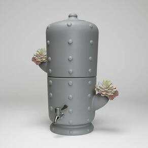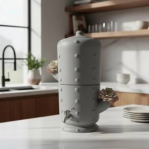 Filtro de barro artesanal em formato de cacto, com capacidade total de 6 litros (3L na parte superior e 3L na inferior). Inclui 1 vela de carvão ativado, 1 boia e 1 torneira plástica prateada. Produzido em barro no Vale do Jequitinhonha, Minas Gerais.Bica móvel