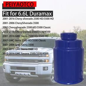 Montagem: (A compatibilidade é apenas para referência, confirme seu número OE antes de comprar.) Seus veículos com 6,6L Duramax Diesel para CHEVROLET EXPRESS 2500 2012-2016 para Chevrolet Express 3500 2012-2016 para Chevrolet Express 4500 2012-2016 para CHEVROLET SILVERADO 2500 2016 001-2 016 para CHEVROLET SILVERADO 2500 CLASSIC 2007 para CHEVROLET SILVERADO 3500 2001-2016 para CHEVROLET SILVERADO 3500 CLASSIC 2007 para GMC Savana 2500 2012-2016 para GMC Savana ANA 3500 0 2012-2016 para GMC Savana 4500 2012-2016 para GMC SIERRA 2500 2001-2016 para GMC SIERRA 2500 CLASSIC 2007 para GMC SIERRA 3500 2001-2001-2007 16 Para GMT C SIERRA 3500 CLASSIC 2007 SUBSTITUIR OE#: TP3018, TP3012, 12664429, 12633243, 33960XE, LFF6012. Vem com anéis de vedação de borracha de qualidade para melhor vedação Incluído na embalagem: 1 x kit de filtro de combustível - ?Substitui o número da peça?: TP3018, TP3012, 12664429, 12633243, 33960XE, LFF6012, 19305685, 98081884 TP1298A, TP1298, TP1298B, 9738548884 , 9801 7645, 89060534, 12646512, 89060534, 61633960XE, BF9882, 86960XE, 12646512, TP1298B - ?AJUSTE?: Chevy Silverado 2500 HD/3500 HD 2001-2006 ChevySilverado 3500 2007 Chevysilverado 2500HD/3500 Classic 2012-2016 Chevy Express 2500/3500 00/45 GMC Sierra 2500 HD/3500 HD 2001-2016 GMC Sierra 2500 HD/3500 Classic 2001-2006 GMC Sierra 3500 2001-2016 GMC Sierra 3500 HD 2016 GMC Sierra 3500 HD 2011-2016 2-2019 6 GMC Savana 2500/3500/4500 - ?FUNÇÃO?: A função do filtro de combustível é remover óxido de ferro, poeira e outros detritos sólidos do combustível para evitar o entupimento do sistema de combustível. Reduz o desgaste mecânico, garante a operação estável do motor e melhora a confiabilidade - ?ALTA QUALIDADE?: A aparência do produto é semelhante à de um invólucro de metal estanhado, que tem resistência à corrosão e propriedades antioxidantes, isolando efetivamente a erosão do óleo no invólucro e prolongando a vida útil do elemento filtrante - ?Observação?: embora este produto seja um acessório autêntico para carro, sua tecnologia foi desenvolvida e aprimorada para ser perfeita para o seu carro. As impurezas podem proteger seu motor e aumentar suas vendas de combustível