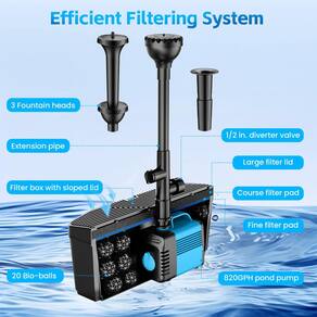 Filtros FEOXSHAL para lagoas externas, caixa de filtro de lago com bomba de fonte de 820 GPH 110V/60W, bomba de lago e kit de filtro para lagoas externas, tanque de água de jardim, lagoas de Koi, lagoas de peixes, cachoeira. Principais características: 1. Filtro submersível multifuncional que combina bomba, filtragem e fonte em uma única unidade compacta. Ideal para manter água limpa e limpa em fontes de água e lagoas de jardim. Simples de instalar e fácil de manter. ; 2. Fornece filtragem mecânica e biológica eficiente; 3. Mantém a água do lago limpa, limpa e saudável; 4. Pré-filtra bombas para manutenção reduzida; 5. Gaiola removível para facilitar a limpeza; 6. A grande área de superfície da gaiola e as pequenas aberturas evitam que detritos grandes obstruam o filtro; 7. Mantenha as lagoas seguras para peixes ou outros animais aquáticos; 8. Dê vida e beleza a qualquer quintal; 9. Retém detritos e evita entupimento da bomba; 10. Melhor circulação de água; 11. Melhora a circulação, oxigenação e gerenciamento de detritos. Especificação: Taxa de fluxo: 3100L/h Altura máxima: 9,8 pés Comprimento do cabo: 3 m Potência da bomba: 60W Tensão: 110-240V Incluído na embalagem: 1 caixa de filtro. 1 bomba de lagoa de 60 W com plugue dos EUA 1 kit de fonte. 4 bocais. 2 almofadas de filtro. 20 bolas de filtro. 1 manual do usuário (idioma português não garantido) - ?Mantenha a lagoa limpa e saudável?Este filtro de lagoa de desempenho versátil e eficiente combina funções de filtração, bomba e fonte em uma única unidade compacta. Ideal para manter água limpa, limpa e saudável em lagoas pequenas e médias, garantindo um ambiente seguro para peixes e outras vidas aquáticas. - ?Potente filtro de bomba de lago?Nosso filtro de lago koi inclui uma bomba de 820 GPH de alta qualidade, ideal para lagoas de até 1600 galões. Oferece fluxo de água forte e silencioso, criando um som relaxante. Limpa efetivamente a água e fornece fluxo suficiente para fontes e outros recursos, com fluxo de água ajustável para atender às suas necessidades. - ?Filtragem de alta eficiência?Os filtros de lagos para lagos externos completos com esponjas de filtro e bolas biológicas, com um sistema de filtragem tudo-em-um que combina filtragem mecânica e biológica, bem como a circulação de água, ajuda a eliminar a água verde e reduzir a manutenção, criando um ambiente aquático saudável e equilibrado. - ?Kit de filtro de fonte de lago?Este kit de bomba e filtro de lago inclui 3 tipos de cabeças de fonte, não apenas percebe o efeito da fonte, mas também cria uma variedade de padrões de paisagem, como água corrente e cachoeiras pela válvula de desvio, que traz vida e beleza a qualquer quintal. - ?Fácil montagem e manutenção?O kit de filtro de lago é projetado para facilitar e versatilidade em manter seu lago limpo; com o design de fecho de segurança facilita abrir/fechar a tampa, o design sem parafusos permite fácil limpeza e manutenção, economizando tempo e energia. - Conteúdo da embalagem: uma caixa de filtro de 32,5 cm x 16,5 cm x 13,8 cm, bomba de lagoa de 820 GPH, 3 cabeças e uma válvula de desvio, 2 almofadas de filtro, 20 bolas biológicas, 4 saídas e manual de uso. Se você não sabe como calcular o volume do seu lago e escolher um filtro, você pode obter uma resposta nossa.