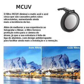 Além de melhorar a sua experiência ao fotografar e filmar, o filtro fornece proteção extra para a câmera do drone, já que a sua estrutura é feita de liga de alumínio, com design antiderrapante para facilitar ainda mais a instalação e a remoção.