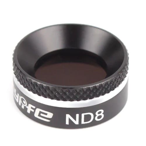 Os filtros ND são especificados por sua capacidade de redução de luz – quanto maior o número, maior a redução da luz na lente de seu drone. O Filtro ND8 permite a entrada de 1/8 de luz.