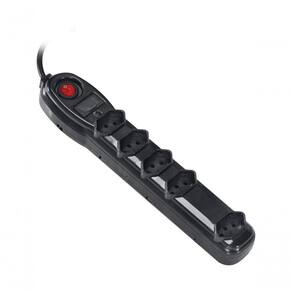 FILTRO DE LINHA 5 TOMADAS PP 0,75MM COMPRIMENTO 1MT Descrição Precisa ligar vários aparelho e tem só uma tomada? O filtro de linha Vinik é uma solução para quem tem vários aparelhos juntos, como: computador, monitor, caixa de som, impressora, modem, switch ou na sala, para TV, home theater, DVD, receptor de TV e dispõe de apenas uma tomada para ligar tudo isso. Além da possibilidade de 05 tomadas, o filtro ainda possui fusível de 10A, para que possa ajudar a proteger seu aparelho contra uma possível oscilação de energia. Possui também botão ON/OFF e conectores com o padrão brasileiro de três pinos, de acordo com a norma NBR 14136. Dados técnicos 5 Tomadas tripolar com Novo padrão Brasileiro (NBR 14136); Fusível: 10A; Corrente máxima: 10A; Entradas Bivolt: 127/220V; Possui proteção contra sobre tensão; Tensão máxima: 250V~; Certificação: Cabo certificado conforme NBR NM 247-5; Plug e tomada certificados conforme NBR 14136 e NBR NM 60884-1; Cor: Preto; Construção: Condutor: Cobre Nu / PVC; Tomada: Injetada em polipropileno com terminais em latão; Plug: Injetado em PVC com terminais em latão; **Comprimento do produto 1 metro (cabo + filtro de linha)**