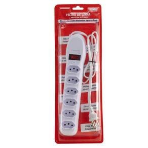 Filtro de Linha 6 Tomadas Incorporadas Bivolt Branco - 60600001 - FORCELINE