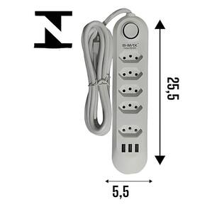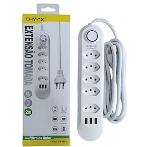 Filtro De Linha C/ 3 Entradas Usb - 5 Tomadas - Tripolar - B-max O filtro de linha B-Max é uma solução completa para proteger e conectar seus dispositivos. Com 5 tomadas tripolares e 3 portas USB, oferece versatilidade para carregar e alimentar diversos aparelhos ao mesmo tempo. Seu cabo de 2 metros proporciona maior alcance, e com potência de 2500W e 10A, garante eficiência e segurança no uso diário. Ideal para ambientes domésticos ou de trabalho, oferece praticidade e proteção contra surtos de energia. Código: 105404 Dimensões aprox. da embalagem em cm: 5X10x30 Peso liq. Aproximado do produto na embalagem: 400g Referência do Modelo: BM-8695A Conteúdo da Embalagem: 01 Filtro de LInha Composição/material: Plastico e Componentes Elétricos Cabo de Alimentação: 200cm Potência Nominal: 2500W-10A Tensão Nominal: 110-220V Tensão USB: 1A Garantia: 90 dias contra defeitos de fabricação pelo fabricante. Imagens meramente ilustrativas. As cores e tonalidades podem variar. Tipo - Extensões Filtros Ean: 7893095442878