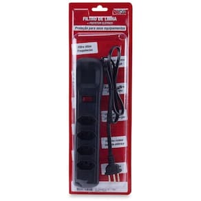 Filtro de linha Forceline com 4 tomadas 10A 2 polos + terra Compacto -Fácil de instalar -Com fusível de proteção -Design moderno e arrojado -Indicador luminoso de funcionamento -Fornecidos com gabinete em plástico ABS -Com protetor contra sobretensão e surtos -Com plugue e tomadas nova norma - NBR14136. -Atenua surtos de tensão provenientes de raios e anomalias da rede elétrica, até 60 joules 10/1000us de energia. -Tensão entrada:127/220V - Bivolt -Chave: Disjuntor Rearmável, 10A e indicador luminoso -Cabo: Preto -Comprimento do cabo: 0,8m -Bitola do cabo: PP - 3x0,75mm Ean: 7899018450050