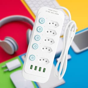 O Filtro de Linha Prime Space ST-863 oferece praticidade, segurança e design moderno para seu dia a dia. Equipado com 5 tomadas no padrão brasileiro e 4 portas USB, é perfeito para conectar e carregar diversos dispositivos ao mesmo tempo, como notebooks, smartphones, tablets, eletrodomésticos e muito mais.