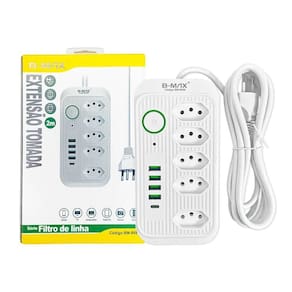 A Extensão Tomada Filtro de Linha oferece praticidade e conveniência com suas múltiplas entradas USB e tomadas. Com 4 entradas USB de 2.1A e 1 entrada USB-C, além de 5 tomadas convencionais, permite carregar e conectar diversos dispositivos ao mesmo tempo. O botão Power Geral oferece controle fácil de ligar e desligar. Seu design compacto de 17,2x8,9cm e cabo de 2 metros proporcionam versatilidade e facilidade de uso. Compatível com diferentes voltagens (bivolt) e potência nominal de 2500W - 10A, atende às necessidades de diversos aparelhos eletrônicos.