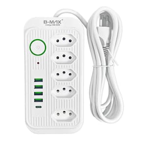 Extensão Tomada Filtro de Linha 4 Entradas USB 2.1A 1 Entrada USB-C 5 Tomadas Botão Power Geral 17,2x 8,9cm Cabo de 2 metros Bivolt Potência Nominal 2500W - 10A
