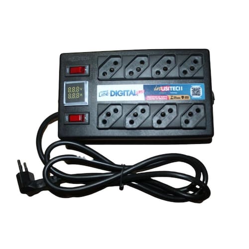 Régua com filtro profissional e protetor integrado. Monitor de tensão e corrente elétrica. Proteja seus equipamentos com filtro de linha power line digital plus