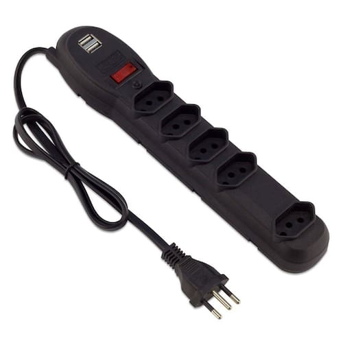Modelo Filtro De Linha Protetor Elétrico 2 USB 5 Tomadas