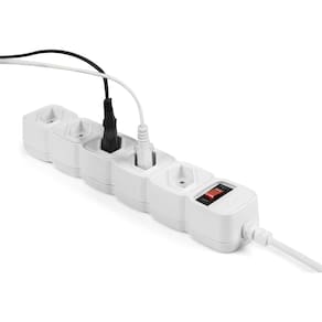 Com 5 tomadas em disposição diagonal, o EPE 205+ facilita a conexão de plugues que ocupam mais espaço.