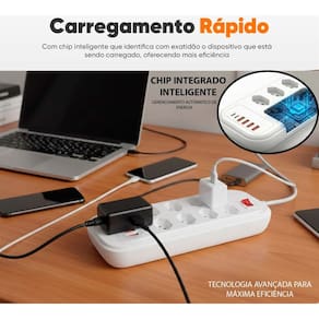 Filtro de Linha Bivolt com 8 Tomadas:8 Tomadas + 4 Portas USB + 2 Portas Tipo-C