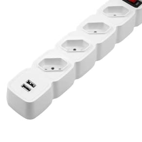O protetor eletrônico EPE 204 USB tem 4 tomadas e 2 portas USB para conectar e carregar seus dispositivos sem preocupações. Ele está disponível na cor preta ou branca, e com 1 ou 3 metros de cabo. Além disso, o EPE tem dupla proteção com chave inteligente contra curto-circuito e sobrecarga, e varistor contra surtos de tensão