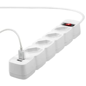 Com 4 tomadas em disposição diagonal, o EPE 204 USB facilita a conexão de plugues que ocupam mais espaço.