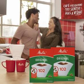 Formato 102, ideal para coadores e cafeteiras de mesmo tamanho Papel de alta resistência, não rompe com facilidade Estrutura porosa que retém o pó, mas deixa passar os sabores Produto biodegradável e descartável Embalagem econômica com 30 unidades Escolha de quem entende de café