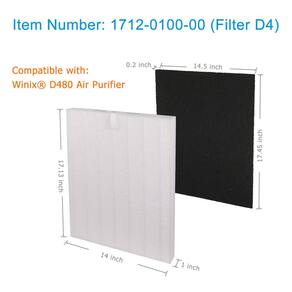Este conjunto de filtros de substituição True HEPA de alta eficiência premium (filtro D4, item número 1712-0100-00) é um conjunto completo de filtros de um ano e totalmente compatível com o purificador de ar Winix D480. Feito em Taiwan, não na China. Este verdadeiro sistema de filtragem HEPA contém os seguintes filtros: - (4) Filtros de carvão ativado: retém partículas maiores no ar como poeira, pelos, pelos de animais de estimação e fiapos, prolonga a vida útil do verdadeiro filtro HEPA e absorve odores domésticos de animais de estimação, cozinhar, fumar, incêndios florestais e COV prejudiciais. - (1) Filtro HEPA verdadeiro de grau H13 premium: captura 99,97% das partículas transportadas pelo ar até 0,3 mícrons de tamanho, criando ar fresco e purificado para você e sua família Totalmente compatível com os seguintes purificadores de ar: - Purificador de ar Winix D480 Usar filtros purificadores de ar de alta eficiência e substituir os filtros regularmente ajudará a otimizar o desempenho da limpeza do ar. Substitua o filtro HEPA verdadeiro a cada 12 meses e o filtro de carvão ativado a cada 3 meses para um desempenho ideal. Isenção de responsabilidade: *Winix é a marca registrada dos fabricantes autênticos. Qualquer uso do nome da marca Winix e designação do modelo é feito exclusivamente para fins de demonstração de compatibilidade. - Totalmente compatível com o purificador de ar Winix D480. Número de peça 1712-0100-00, filtro D4. Excelente qualidade, feito em Taiwan, não na China. - Contém um conjunto de filtros de um ano, incluindo um (1) filtro HEPA verdadeiro H13 e quatro (4) filtros de carvão ativado - O filtro de carvão ativado retém partículas maiores no ar como poeira, pelos, pelos de animais de estimação e fiapos, prolonga a vida útil do verdadeiro filtro HEPA e absorve odores domésticos de animais de estimação, cozinhar, fumar, incêndios florestais e COV prejudiciais - O filtro HEPA verdadeiro de grau H13 captura 99,97% das partículas transportadas pelo ar até 0,3 mícrons de tamanho, criando ar fresco e purificado para você e sua família - Fácil de substituir e descartável, sem necessidade de ferramentas. Substitua o filtro HEPA verdadeiro a cada 12 meses e o filtro de carvão ativado a cada 3 meses para um desempenho ideal
