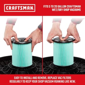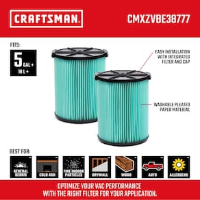 CRAFTSMAN CMXZVBE38777 Filtro de vácuo de substituição HEPA Media Wet Dry Vacuums para a maioria dos aspiradores CRAFTSMAN Shop de 5 a 20 galões, fácil instalação e retém alérgenos, pacote com 2 - O que está incluído: 2 filtros de mídia HEPA - Serve em: 19 litros. até 20 galões Aspiradores artesanais feitos em 1988 e depois - Filtragem eficaz: somente captador seco – retém pólen e alérgenos comuns como pelos de animais de estimação, mofo, poeira de drywall e fiapos de secadora - Desempenho ideal de VAC: substituir filtros frequentemente ajudam a manter a potência de sucção e prolongar a vida útil do aspirador - Material com classificação HEPA: filtro de 5 camadas feito com material de classificação HEPA, mas não atende às diretrizes EPA ou RRP para filtragem HEPA certificada. - Fácil instalação: a trava Qwik permite trocas rápidas e fáceis do filtro de aspirador de pó molhado/seco - Aspiradores de pó úmido/seco: CMXEVBE17925, CMXEVBE17584, CMXEVBE17590, CMXEVBE18590, CMXEVBE18690, CMXEVBE17155, CMXEVBE17594, CMXEVBE17595, CMXEVBE17606 cm 606Aspiradores de pó para loja XEVBE17607, CMXEVBE17596, CMXEVBE17656, CMXEVBE18595 e CMXEVBE18695 Craftsman
