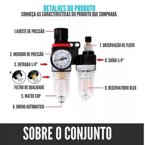 = Modelo: Filtro Eliminador De Água E Lubrificador de Óleo Com Regulador Pressão 1/4''