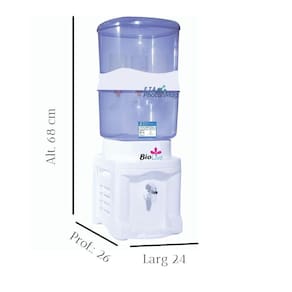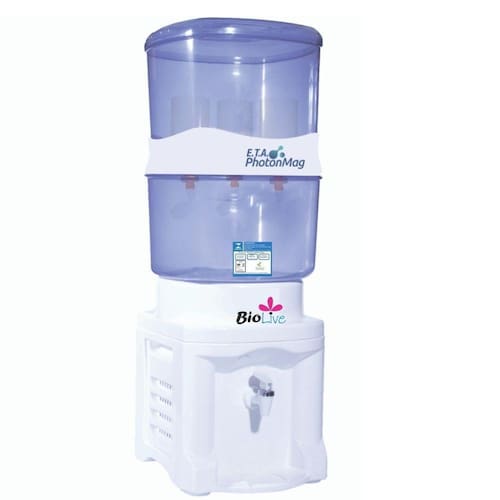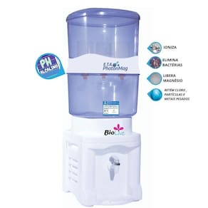 Purificador Ionizador Água Alcalina Tipo Galão com Base- 3 velas CERTIFICADO INMETRO 001574/2021 Atende famílias e escritórios de até 8 pessoas, após o enchimento do primeiro reservatório Equipado Bóia dosadora que aumenta a capacidade de armazenamento. Velas vazão de 350 a 400 Ml por hora Medidas: 68 alt X 26 prof. X 24 larg Base inferior com cuba cerâmica Capacidade de armazenamento: 16,5 litros