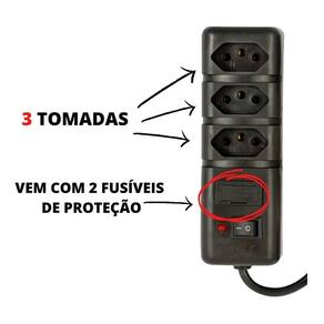 Filtro de linha com fusível 3 tomadas 2p+t cabo 1,12 metros. Filtro de linha com fusível de proteção. Cabo 1,12m Modelo: 3 tomadas / ABS: Preto Bivolt: pode ser utilizado em 110/127 e 220 volts / Tipo de tomada: NBR14136 10A Aplicação: eletrônicos, smartphones, tablets, laptops, impressoras, computadores, videogames entre muitos outros aparelhos. IItens Inclusos: 1 filtro de linha Kahel com corpo plástico (ABS) com 3 tomadas Marca: Não Informado