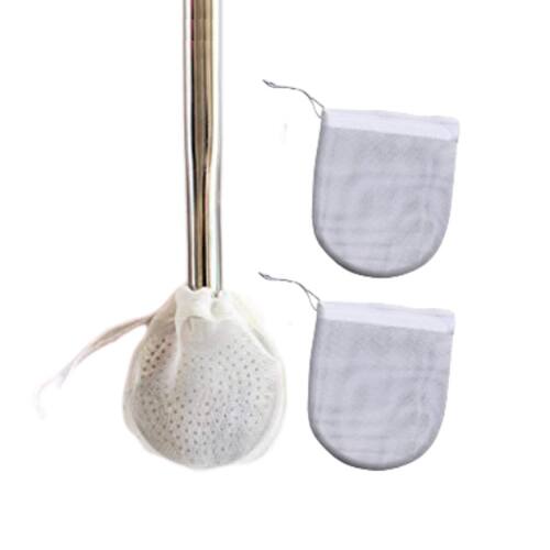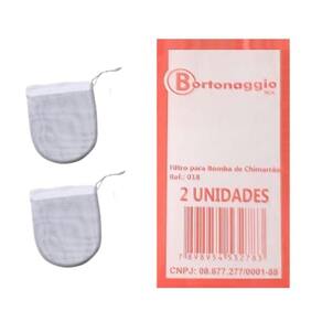 Filtro para bomba de chimarrão e tereré, fabricado em tecido e com cordão para amarrar.
