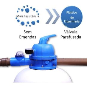 O filtro é anticorrosivo, extremamente resistente às pressões internas a quais são submetidos devido a uma rigorosa bateria de testes feitos após o seu processo de fabricação por rotomoldagem. Possui design exclusivo que prima pela estética, ergonomia e um melhor desempenho na filtração da água da sua piscina.