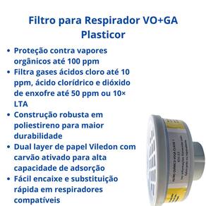 Filtro para Respirador VO+GA Plasticor Proteção contra Vapores Orgânicos e Gases Ácidos Segurança avançada para ambientes com contaminantes químicos O Filtro VO+GA da Plasticor é composto por cartucho, grade interna e tampa externa em poliestireno, com duas camadas de papel Viledon envolvendo carvão ativado. Projetado para uso em sistemas de respiração por cartucho, ele oferece barreira eficiente contra vapores orgânicos e gases ácidos em concentrações controladas.