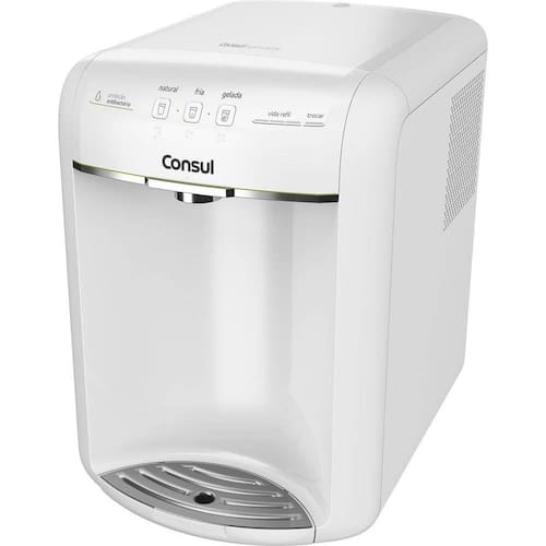Marca Consul Funções Água natural, água fria e água gelada Composição/Material ABS, Poliacetal, Silicone, Polipropileno e Carvão Conteúdo da Embalagem 1 Purificador de água refrigerado Consul Bem Estar, 1 bandeja coletora, 1 elemento filtrante, 1 manual de instruções, 1 kit de instalação com 1 redutor de vazão, 3 parafusos, 3 buchas, 3 espaçadores, 1 mangueira de 1/4, 1 conector de 1/4, 1 conector de 1/2 e 1 gabarito para fixar o produto na parede Cor Branco Dimensões aproximadas do produto (cm) AxLxP 35,5x25,3x33,4cm Peso líq. aproximado do produto (kg) 12Kg Referência do Modelo CPB36AB