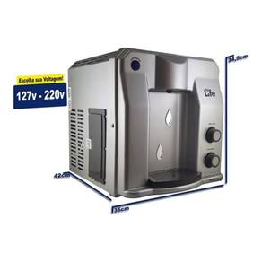 Filtro purificador de água com ozônio gelada prata 220v flexzon - top life Top life flexzon um purificador refrigerado com a tecnologia do ozônio tenha mais qualidade na água e bactérias a menos. Um produto com a tecnologia ozônio, capaz de reduzir drasticamente uma série de elementos causadores de doenças, como: impurezas, bactérias, vírus e fungos. Ideal também para a purificação dos alimentos. Limpar e purificar os alimentos com ozônio também é uma prática cada vez mais comum no mundo, por ser altamente eficiente e simples. O ideal é usar o ozonizador na água com os alimentos em uma bacia. Desta maneira, as impurezas serão eliminadas por completo. Quando acionado o botão, o purificador libera a tecnologia do super ozônio. O gás ozônio o é considerado o bactericida mais poderoso do mundo. O ozonizador de água, reduz drasticamente uma série de elementos causadores de doenças, como: impurezas, bactérias, vírus e fungos. Benefícios do ozônio na água: - o ozônio tem a capacidade de matar vírus e bactérias 3125 vezes mais rápido que o cloro. - é o mais potente substancia antiviral conhecida pelo homem. - e extremamente seguro em dosagens recomendadas. - é efetivo contra vírus até mesmo em baixas concentrações. - além de eliminar com maior eficiência os microrganismos presentes nas frutas, legumes e vegetais, o ozônio também diminui significativamente a ação dos agrotóxicos sem prejudicar as características próprias desses alimentos. Elemento filtrante 1 - filtragem - polipropileno de 25 micra A água tratada atravessa o elemento filtrante de 25 micra, reduzindo significativamente as partículas em suspensão na água barro, areia, lodo, limo, ferrugem, entre outros . 2 - desinfecção - zeolife Material natural com efeito bactericida e bacteriostático eficiência bacteriológica conforme nbr 14908 , que remove metais pesados Cinza, níquel, cromo, manganês, zinco, mercúrio e cobre , amônia, turbidez, cor, sabor e preserva os sais minerais. 3 - purificação - carvão ativado A água previamente tratada atravessa os poros do carvão ativado, da casca de coco de babaçu e pela adsorção dá sequência na redução do cloro e de outras substâncias químicas e orgânicas. 4 - carvão ativado impregnado com prata coloi-dal Etapa de continuidade à retenção do cloro livre e compostos orgânicos, iniciando-se o processo de inibição e redução de bactérias através da propriedade bacteriostática da prata, reduzindo uma eventual contaminação da água, previamente tratada, por bactérias como escherichia coli bactérias pertencentes ao grupo dos coliformes fecais , pseudomonas aeruginosas e microcystis aeruginosa. 5 - filtragem - manta e tela texturizada Término do processo de purificação e filtragem. A água atravessa a manta e a tela texturizada de 150 micra, promovendo mais uma filtragem, fornecendo água límpida, transparente, sem gosto e sem cheiro.