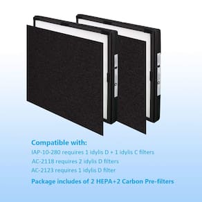 ? Ame a família, comece respirando. ? ? A Wocase se concentra em P&D e produção de substitutos de filtros purificadores de ar e visa fornecer produtos adequados e de alta qualidade para mantê-lo longe do ar sujo! ? O filtro HEPA tamanho D de substituição IAF-H-100D foi projetado e projetado para ser compatível com os seguintes dispositivos purificadores de ar ambiente Filtrete e Idylis: AC-2118:2 filtros de tamanho D AC-2123:1 filtro de tamanho D IAP-10-280:1 filtros de tamanho D+1 C Se você precisar do filtro C, verifique o ASIN: B0919P436V Dimensões do produto: W: 11,7 x L: 13,5 x A: 1,4 polegadas O pacote inclui 2 filtros de tamanho HEPA D+2 pré-filtros de carbono. Recomenda-se substituir a cada 12 meses ou depende do uso. Características do produto: O filtro HEPA avançado pode capturar com eficácia até 99,97% das partículas transportadas pelo ar do ar interno e não libera as partículas de volta ao ar. O pré-filtro de carvão ativado ajuda a reduzir odores de cozinha, fumaça, VOCs, fumaça de tinta, poluentes químicos e muito mais. Este não é um produto Autêntico da Filtrete e não está coberto por nenhuma garantia de Autêntico. Qualquer uso do nome da marca ou da designação do modelo deste produto é feito exclusivamente para demonstrar compatibilidade. -?AJUSTE PERFEITO?- Filtro D IAF-H-100D compatível com os modelos de purificador de ar ambiente Idylis: IAP-10-280, AC-2118, AC-2123. Observe: o AC-2118 precisa de 2 filtros de tamanho D, o AC-2123 precisa de 1 filtro de tamanho D, o IAP-10-280 precisa de 1 filtro de tamanho D+1 C. Se você precisar do filtro C, verifique o ASIN: B0919P436V. -?HEPA PREMIUM?- O filtro True HEPA captura com eficácia até 99,97% das partículas transportadas pelo ar interno, como poeira e fiapos, detritos de ácaros, esporos e pólen de fungos, pêlos de animais, PM 2,5 e partículas de exaustão e muito mais. -?CARVÃO ATIVADO?- O pré-filtro de carvão ativado ajuda a reduzir odores indesejados, fumaça e poluição atmosférica, toxinas nocivas, VOCs, fumaça de tinta, poluentes químicos e muito mais. -?PÚBLICO-ALVO?- É essencial e ideal para famílias com crianças, idosos, animais de estimação, alérgicos, fumantes e pessoas com asma. Mantenha sua casa com um cheiro fresco e sem odores. -?ESPECIFICAÇÕES?- Tamanho do produto W: 11,7 x L: 13,5 x A: 1,4 polegadas, o pacote inclui 2 filtros de tamanho HEPA D e 2 pré-filtros de carbono. Recomendado substituir o filtro em média 12 meses ou dependendo do uso.