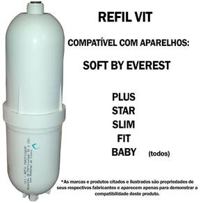 Filtro refil compatível com purificadores de água Soft by Everest. Compatível com modelos Plus, Star, Slim, Fit e Baby. Equivalente ao refil 2 em 1. Remove cloro, elimina sabores, retém partículas de sujeira, barro e ferrugem, e ajuda a elevar o pH. Eficiência da retenção de partículas: classe iii. Eficiência da redução de cloro livre: aprovado. Produto de acordo com a norma ABNT NBT 16098:2012.Tipo