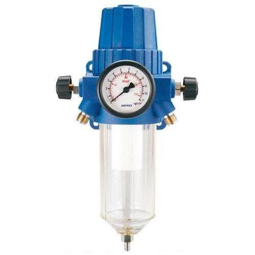 Filtro para ar comprimido com regulador de pressão e duas saídas de 1/4". Utilizado sempre que o ar necessitar ser filtrado e seco, pinturas, limpezas , etc. Filtro regulador para ar comprimido que elimina a presença de óleo, impurezas e partículas que possam prejudicar uma perfeita pintura, regula a saída mantendo uma pressão e vazão constantes, permitindo uma vida útil mais longa do aparelho e aplicações mais uniformes e economiza energia, permitindo ao compressor espaços mais longos para recarga em virtude do controle de saída de ar. Filtro para controle de pressão de alta vazão com válvula incorporada, duas saídas reguláveis de 1/4"BSP macho , entrada 3/8 BSP Fêmea, manômetro calibrado até 150 Lbs/pol2. Dreno automático. Sistema centrífugo de filtragem com refil de 5 micra, copo transparente. Cod. 10618000 Nº de saídas: 2 saídas de 1/4" Pressão Máxima: 175 lbs/pol Vazão: 1 torneira aberta 13,1 pcm - 2 torneiras 14,3 pcm Copo: policarbonato Entrada de ar: 1/4" Dreno: automático
