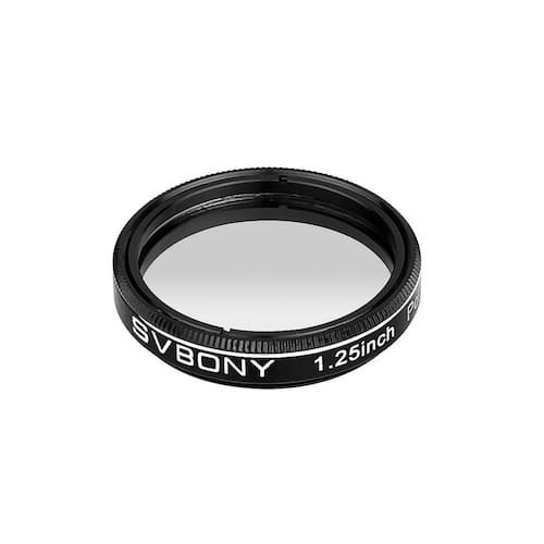 Aplicação: Filtro de lua SVBONY adequado para oculares de telescópio de 3,15 cm Função: Reduzindo a quantidade de luz que entra na ocular, aumenta o contraste entre a lua e a estrela; . Permite que você veja mais detalhes sobre a lua e as estrelas Design: A aparência é cinza, pode passar a polarização linear na mesma direção de sua polarização em cerca de 80%; e torna a luz polarizada linearmente perpendicular à sua direção de polarização em menos de 1%; não altera a cor natural da lua Detalhes: Rosca de filtro padrão de 3,15 cm (M28,5 x 0,6) . Materiais: Alumínio A embalagem inclui: 1 filtro polarizador SVBONY de 3,15 cm 1 capa de plástico SVBONY - O filtro de lua de 3,17 cm reduz a quantidade de luz que entra no ocular e aumenta o contraste ocular - O filtro de lua reduz o reflexo; permitindo a transmissão de apenas 13% da luz refletida, o que significa que você pode ver a superfície com mais clareza e estudar a Lua com maior conforto - Permitir o máximo de contraste de detalhes lunares aumenta o contraste da lua e dos planetas em imagens fotográficas - O vidro óptico de cor neutra não muda a cor natural da lua - Tem uma rosca de filtro padrão de 3,17 cm (M28,5 x 0,6); é um ótimo presente de aniversário de Natal