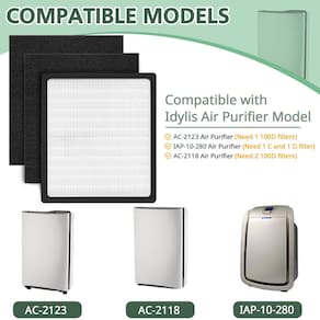 Ampla compatibilidade: Compatível com purificador de ar Idylis. Idylis IAF-H-100D Idylis IAP-10-280 Idylis AC-2118 Idylis AC2118 Idylis AC-2123 Idylis AC2123 056211 73989 560907 0302655 0306188 0306188 LOWESRAPF-D-4 LOWSRAPRFD4 Valorizamos sua satisfação. Se você tiver algum problema ao usar nosso produto, sempre . Nota: Este não é um produto Autêntico Idylis. Os nomes de marcas e logotipos da Idylis são marcas registradas de seus respectivos proprietários. Qualquer uso do nome da marca Idylis ou designação de modelo para este produto é feito exclusivamente para fins de demonstração de compatibilidade. - Compatível: serve para purificadores de ar Idylis IAF-H-100D AC-2123 IAP-10-280 IAP10280 AC-2118 (AC-2118 requer 2 conjuntos) purificadores de ar. - Filtração de camada dupla: os filtros HEPA podem ajudar em partículas grandes e transportadas pelo ar, incluindo pólen, poeira, pelos de animais, poluentes comuns e fibras de tecido. O filtro de carbono é útil para mais de 99% dos odores, como odores de animais de estimação, culinária, etc. - Qualidade premium: oferecemos substituições de alta qualidade, duráveis e duradouras. Para melhorar o desempenho do purificador de ar, substitua o filtro hepa a cada 6 a 8 meses. - Fácil de instalar: basta remover o filtro mais antigo e sujo e substituir. Troque em menos de 3 minutos, proporcionando eficiência de tempo. - Atendimento ao cliente: o pacote inclui 1 filtro HEPA + 2 filtros de carbono. Valorizamos o atendimento ao cliente e a satisfação. Se você tiver algum problema com o encaixe do filtro, através da nossa página inicial da Amazon. Filtro feito de papel certificado FSC