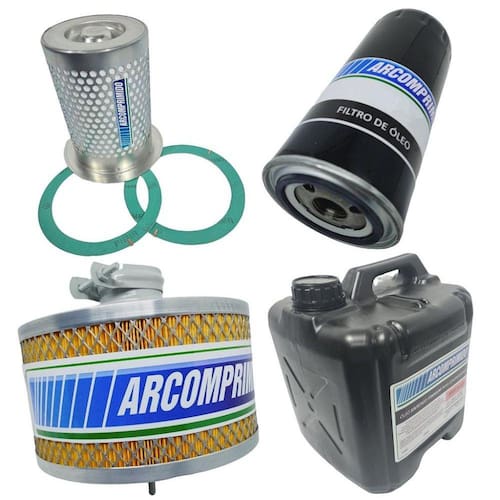 Kit de Filtros e 20L de Óleo Sintético Similares para Compressor Techto Platinum TB40. O kit contém: * 01 Filtro Separador de Ar e Óleo * 01 Filtro de Óleo * 01 filtro de Ar * 20L de Óleo Sintético 8000hrs
