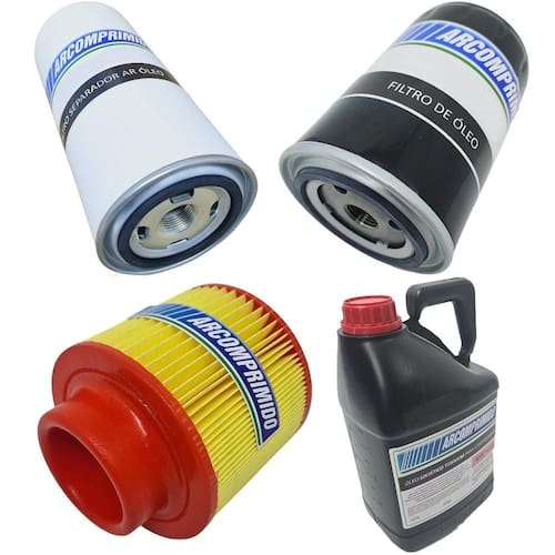 Kit com Filtros e 5L de Óleo Sintético 8000hrs Similares para Compressor Compair L07. O kit contém: