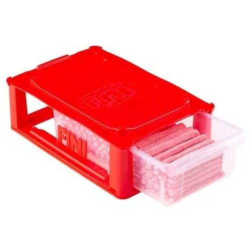 Balas de gelatina Fini Tubes sabor artificial de Morango e Nata Azedinho. Gaveta contedo aproximadamente 150 unidades (20g= 3 unidades). Peso líquido total 1,00 kilogramas.