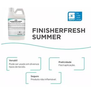 Acabador Fresh Summer Fácil de passar roupas e tecidos de fibras naturais e sintéticas presentes em toalhas, lençóis, colchas, mantas, cortinas, entre outros, eliminando asperezas e otimizando o efeito de passar, deixando os tecidos macios e aromáticos por longos períodos de tempo. É adequado para uso doméstico e profissional. Seu aroma resiste a altas temperaturas.